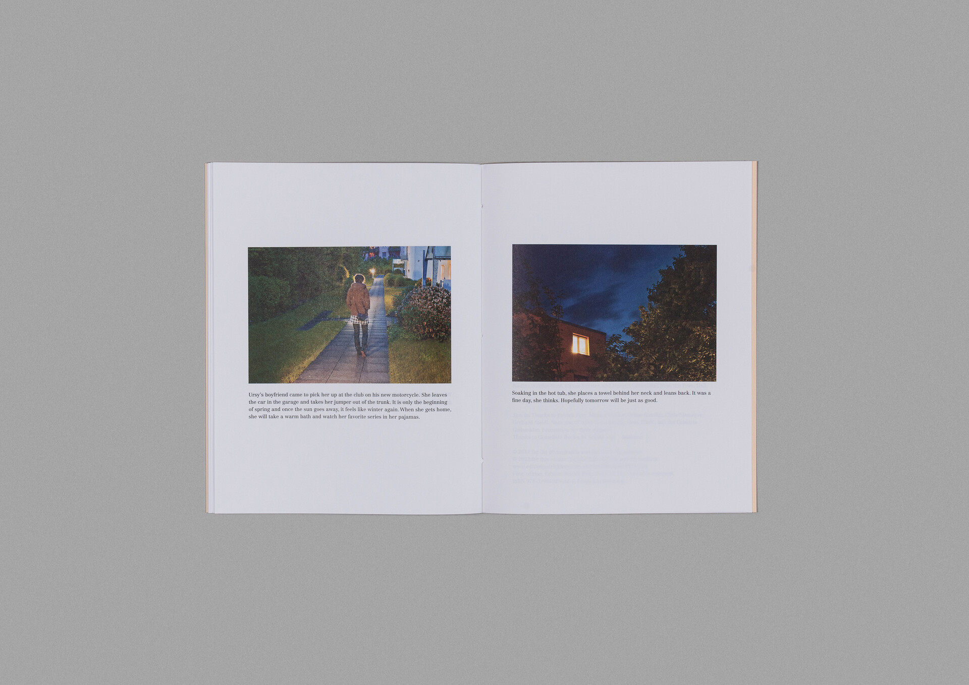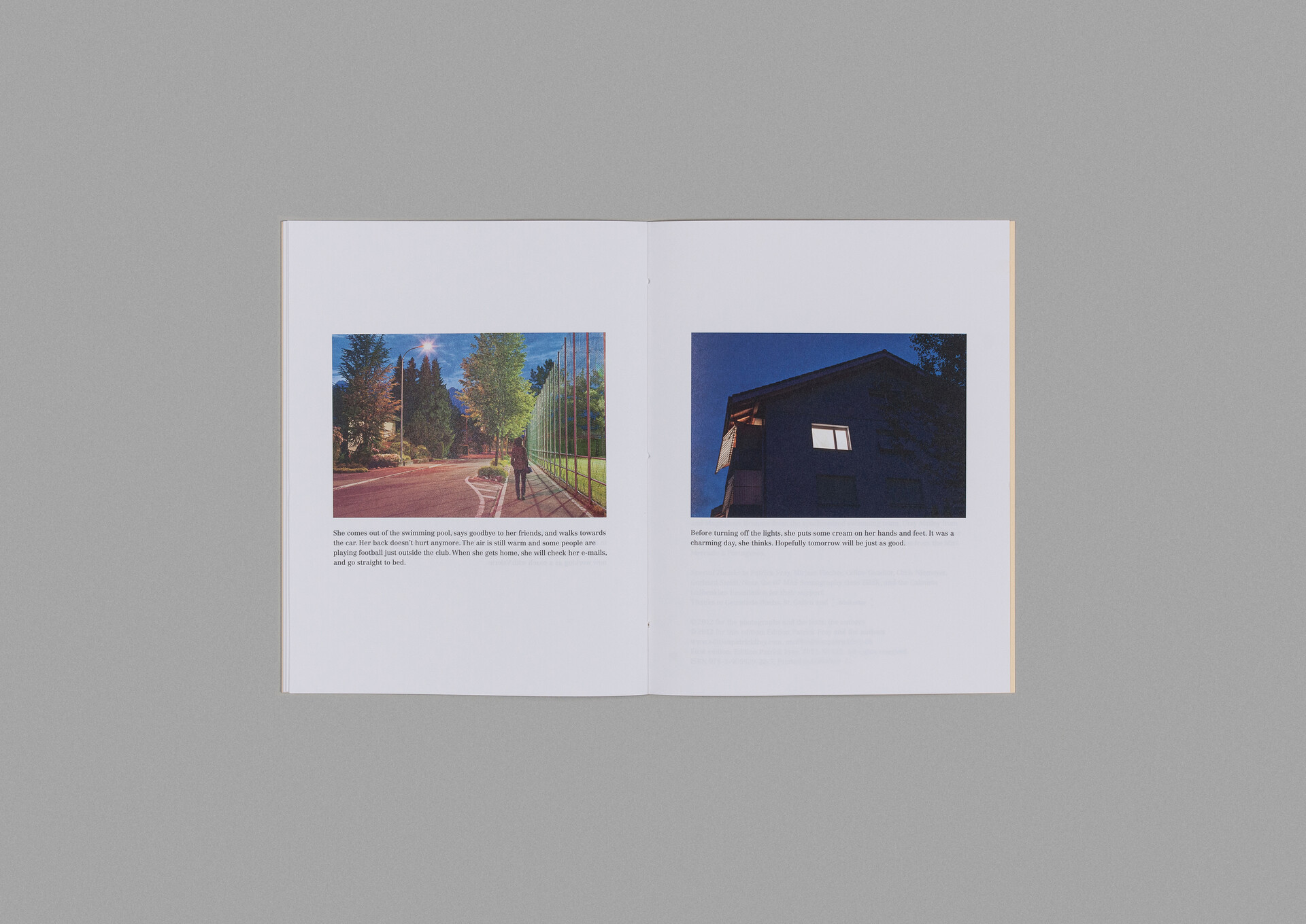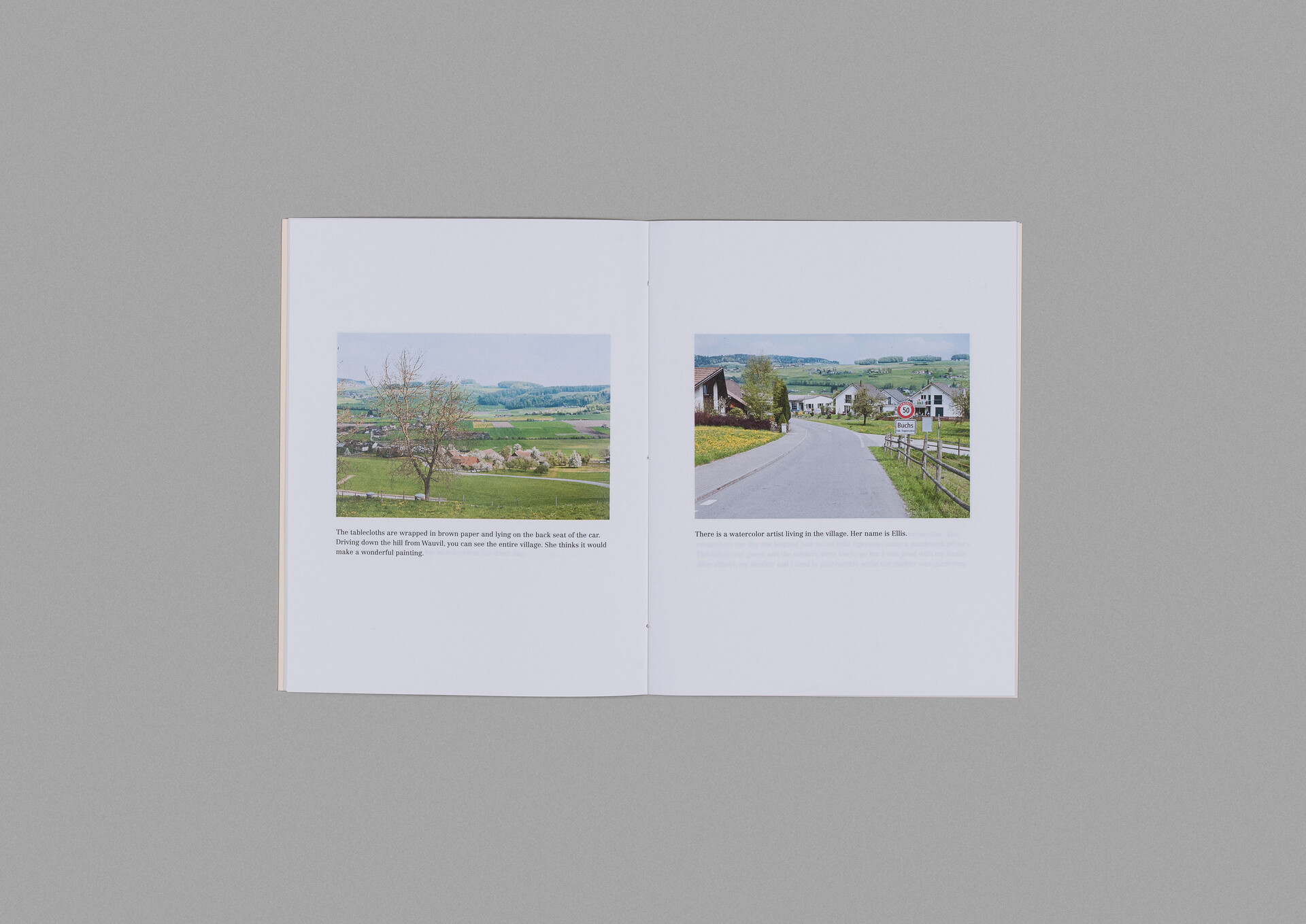 Buchs — das sind vier gleichnamige Städte in den Schweizer Kantonen St. Gallen, Zürich, Aargau und Luzern. Vier gleichnamige Orte in vier verschiedenen Gegenden bilden den Ausgangspunkt für eine Spekulation über Allgegenwärtigkeit, die Realität und Erzählung verschwimmen lässt. Die Szenografin Carolina E. Santo und die Fotografin Véronique Hoegger spielen in ihrer Publikation Buchs ein Ortsspiel, das mit einem Wortspiel beginnt : «4 Books for 4 Buchs.» In Anlehnung an Doreen Masseys Verständnis von Raum als « simultaneity of stories so far », handeln die vier verschiedenen Erzählungen vom banalen Alltag einer jungen Frau, die gleichzeitig eine und mehrere ist; und deren Identität ungeklärt bleibt. Es passiert nichts Besonderes. Mit ähnlichen und doch nicht gleichen Texten erzählen die vier Bücher eine ähnliche, aber nicht identische Geschichte der «Nicht-Ereignisse» eines Tages.