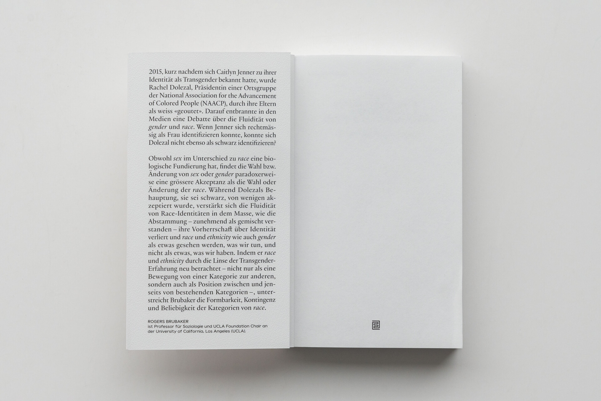 Obwohl sex im Unterschied zu race eine biologische Fundierung hat, findet die Wahl bzw. Änderung von sex oder gender paradoxerweise eine grössere Akzeptanz als die Wahl oder Änderung der race. Während Dolezals Behauptung, sie sei schwarz, von wenigen akzeptiert wurde, verstärkt sich die Fluidität von Race-Identitäten in dem Masse, wie die Abstammung – zunehmend als gemischt verstanden – ihre Vorherrschaft über Identität verliert und race und ethnicity wie auch gender als etwas gesehen werden, was wir tun, und nicht als etwas, was wir haben. Indem er race und ethnicity durch die Linse der Transgender-Erfahrung neu betrachtet – nicht nur als eine Bewegung von einer Kategorie zur anderen, sondern auch als Position zwischen und jenseits von bestehenden Kategorien –, unterstreicht Brubaker die Formbarkeit, Kontingenz und Beliebigkeit der Kategorien von race.