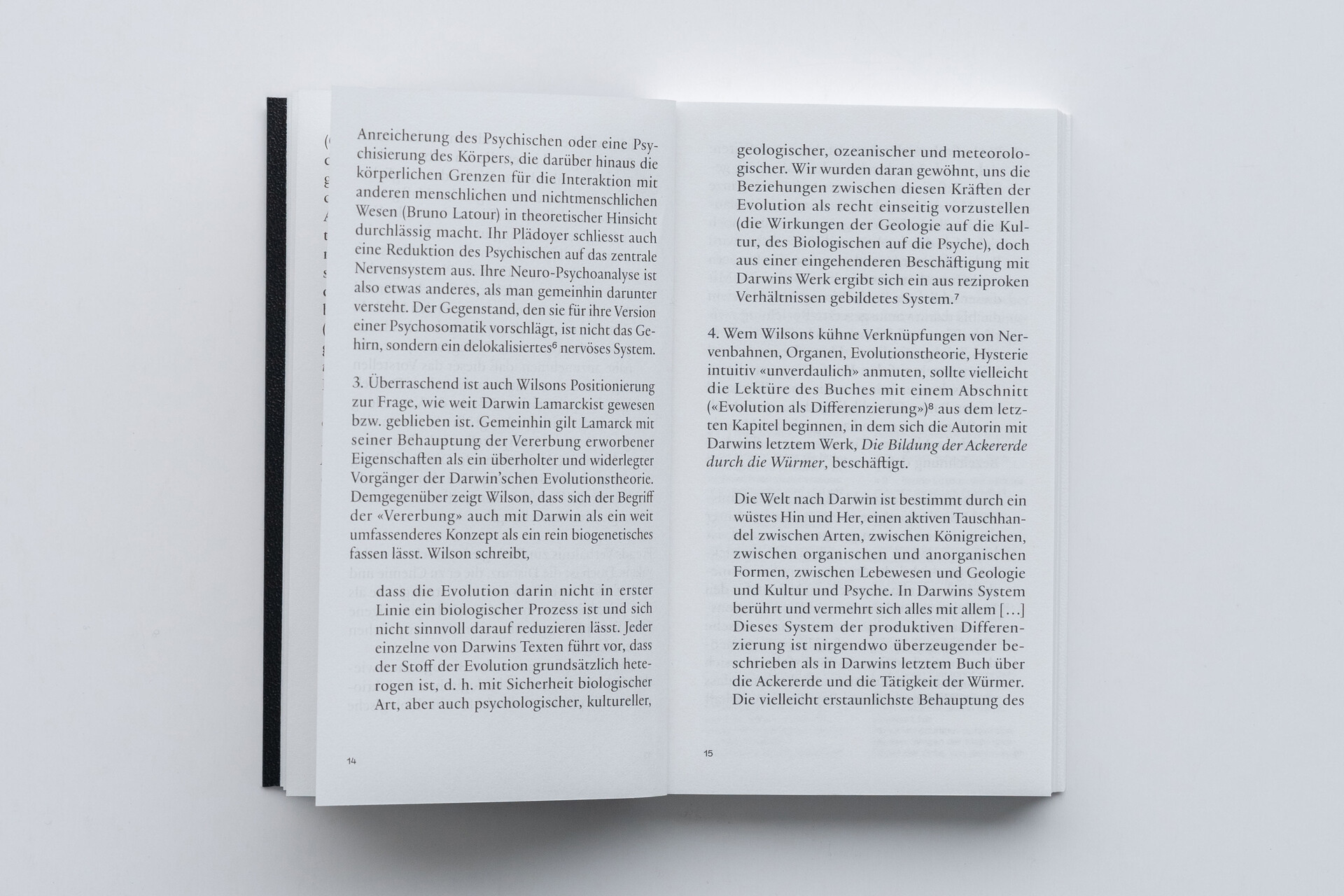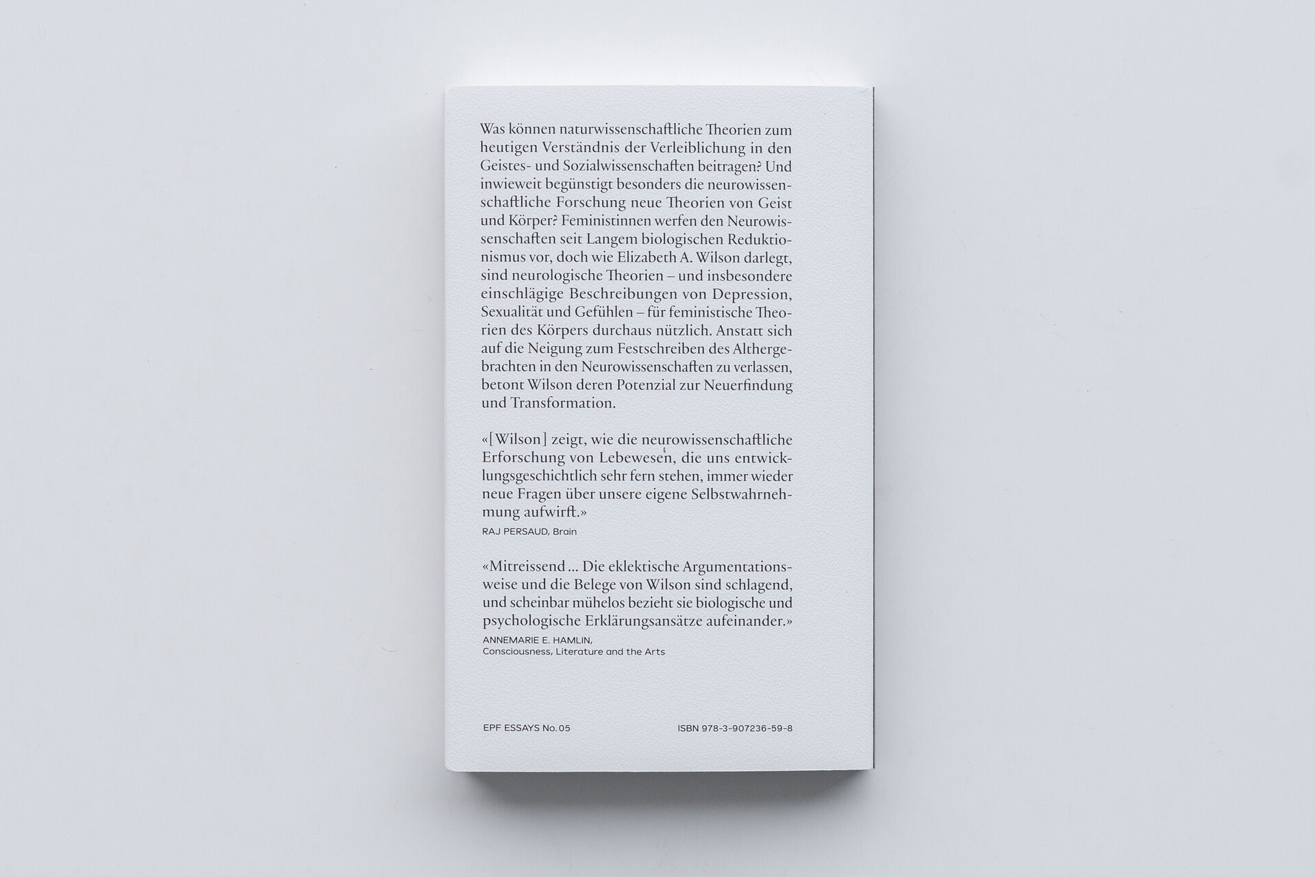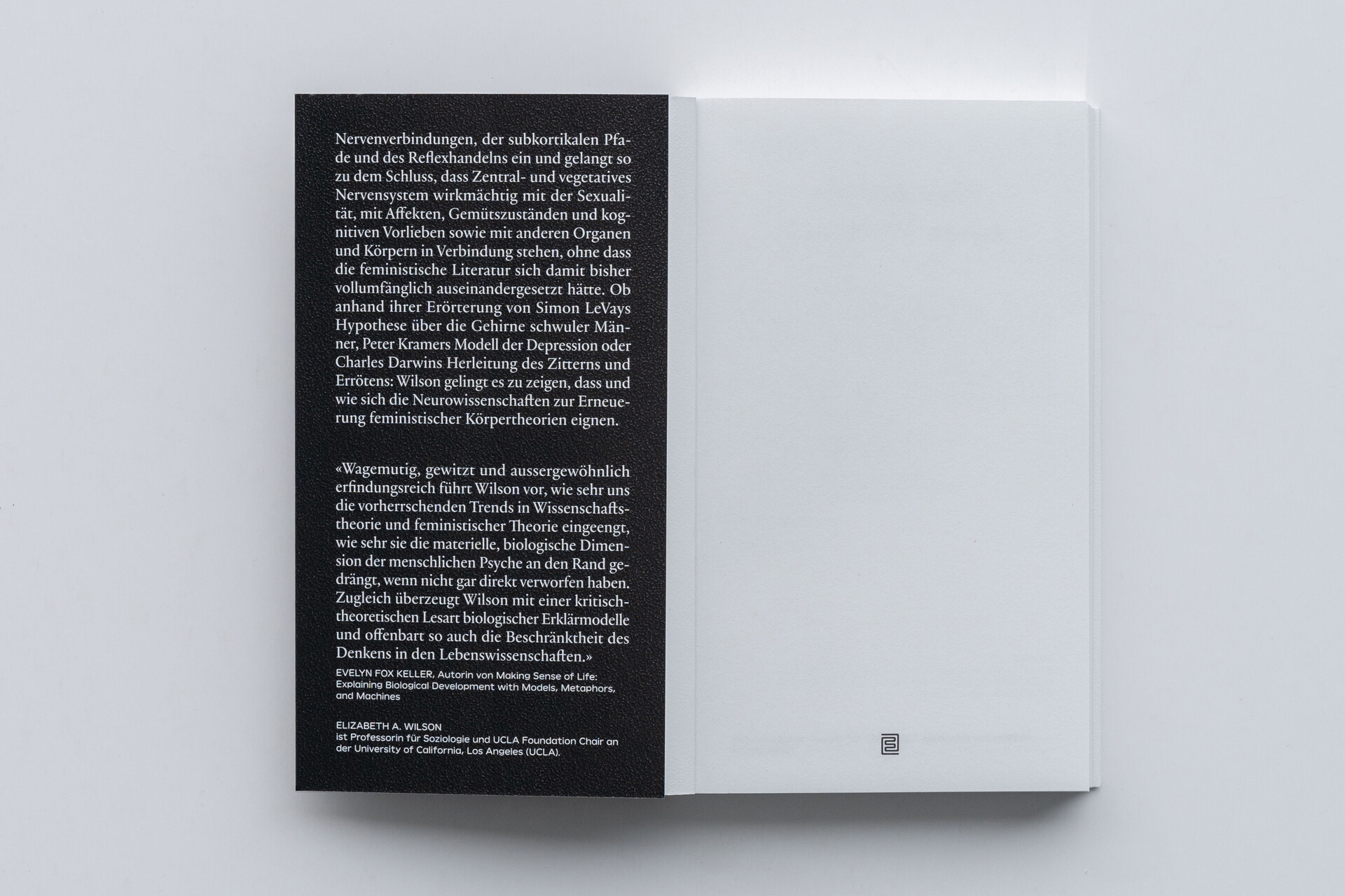 «Wagemutig, gewitzt und aussergewöhnlich erfindungsreich führt Wilson vor, wie sehr uns die vorherrschenden Trends in Wissenschaftstheorie und feministischer Theorie eingeengt, wie sehr sie die materielle, biologische Dimension der menschlichen Psyche an den Rand gedrängt, wenn nicht gar direkt verworfen haben. Zugleich überzeugt Wilson mit einer kritisch-theoretischen Lesart biologischer Erklärungsmodelle und offenbart so auch die Beschränktheit des Denkens in den Lebenswissenschaften.» – Evelyn Fox Keller, Autorin von Making Sense of Life: Explaining Biological Development with Models, Metaphors, and Machines