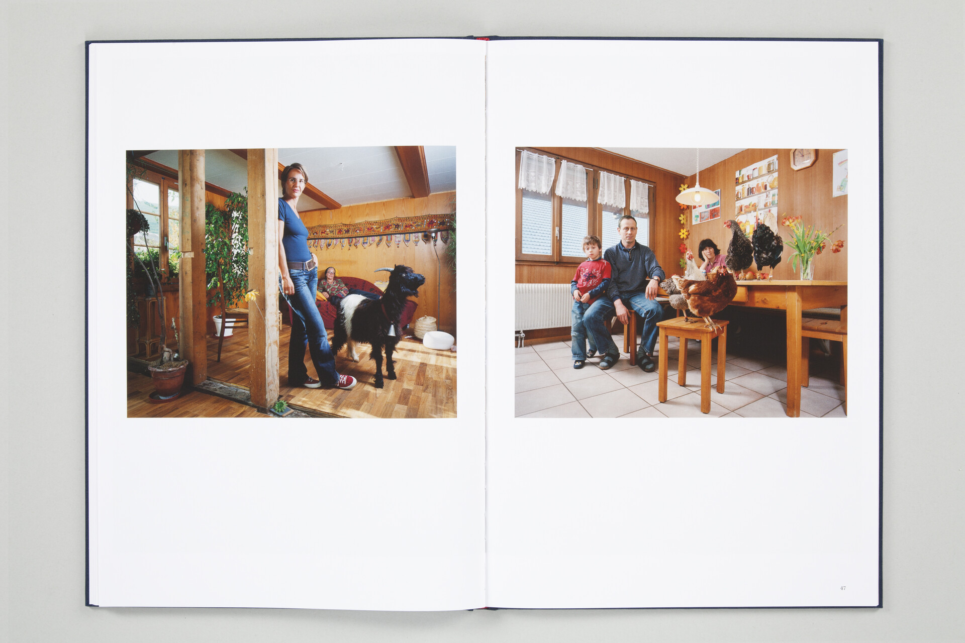 Die Fotos, aufgenommen mit einer Grossbildkamera und in Farbe, entstanden in verschiedenen Regionen der Schweiz, vor allem in den Kantonen Bern und Solothurn, in Alpendörfern und auf Bauernhöfen, in Städten und Agglomerationen.