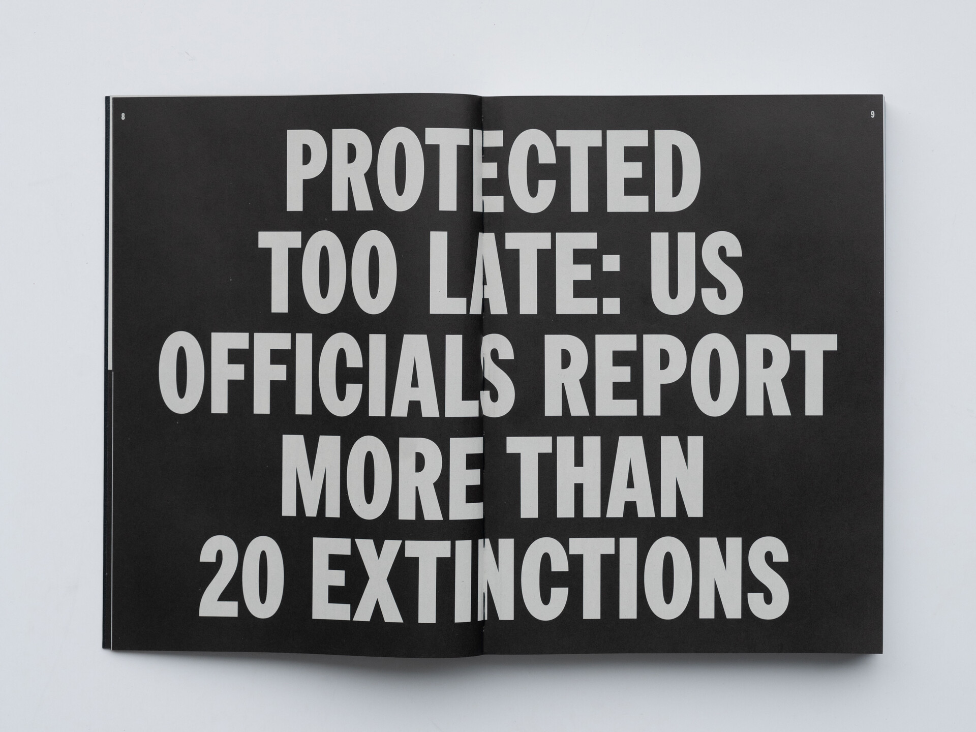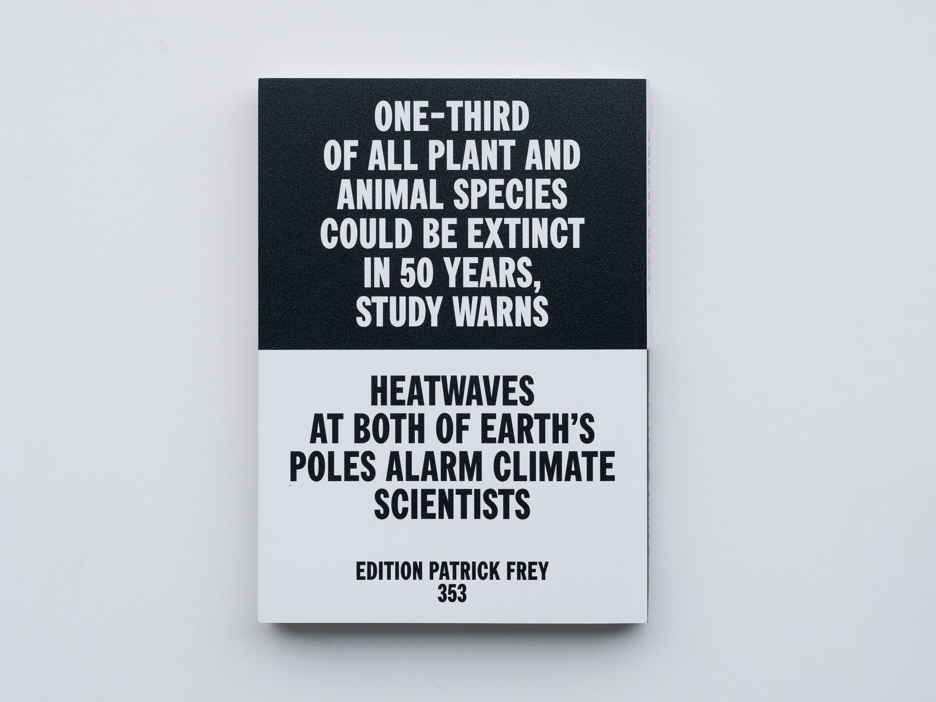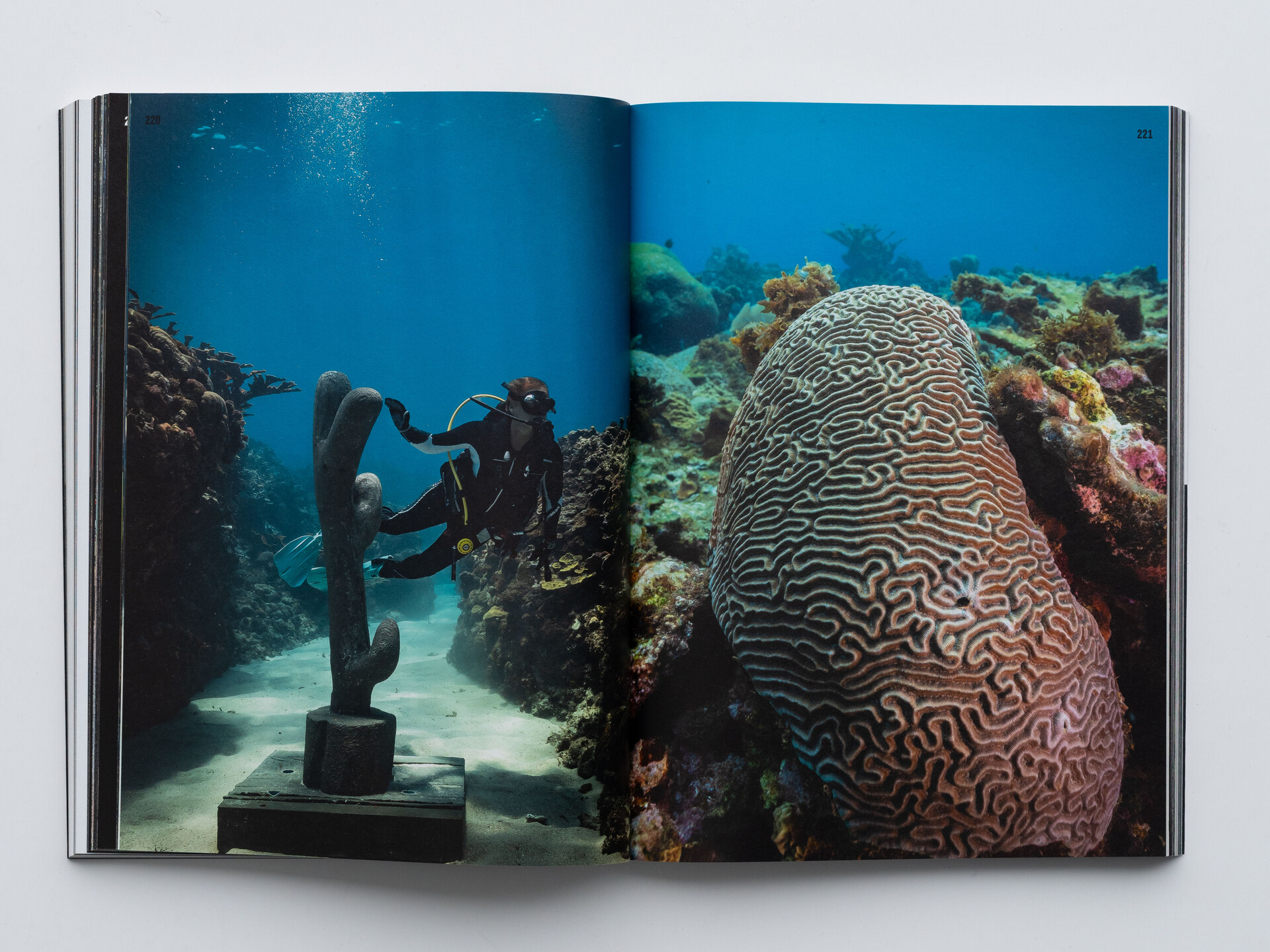 The book’s focus is on our relationship to nature and the havoc we’ve wrought on our environment, which are the principal themes of the artist's practice. Prophecies of doom culled from newspaper articles sound the alarm about the looming climate emergency, for coral reefs aren’t the only critically endangered biomes.