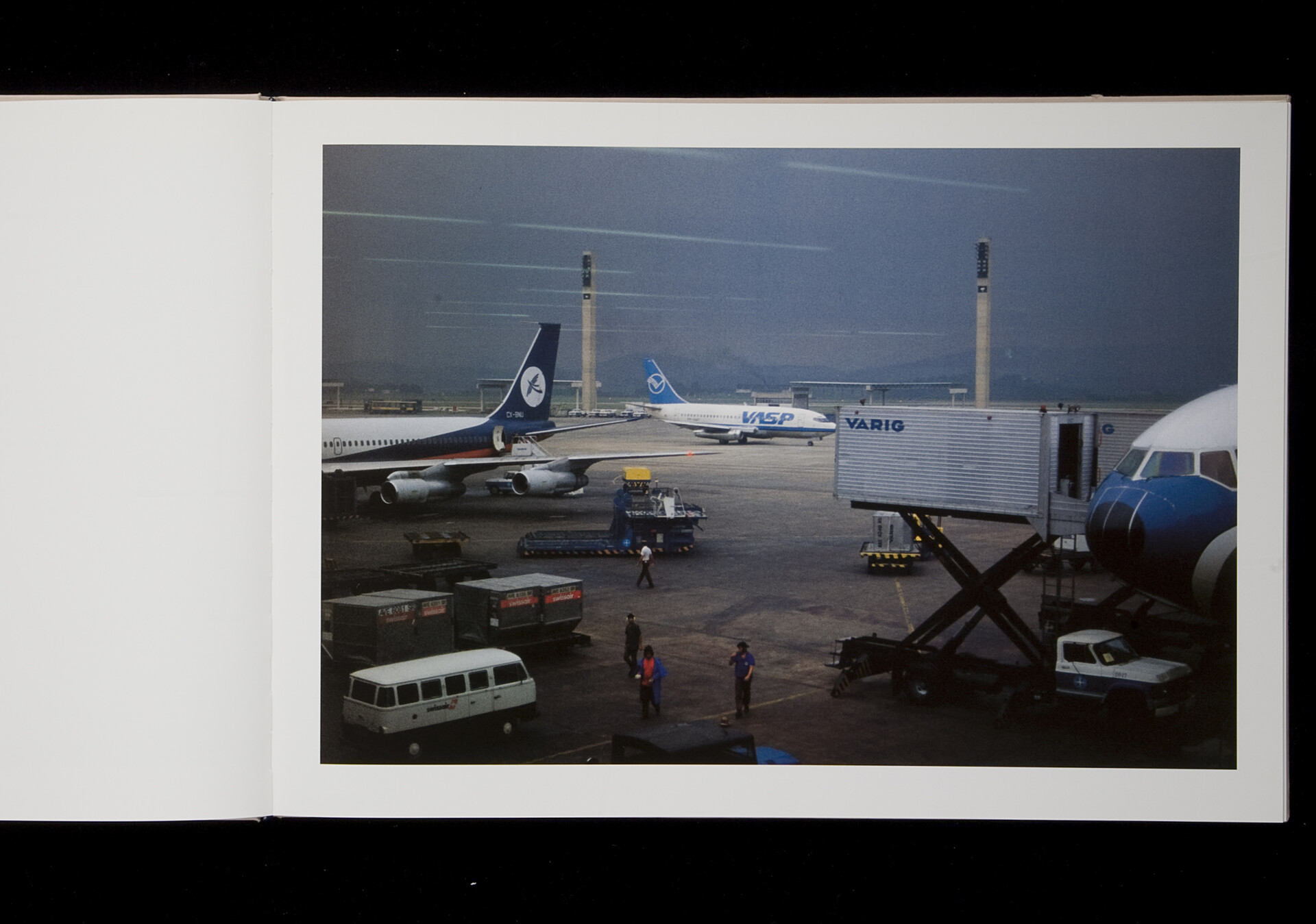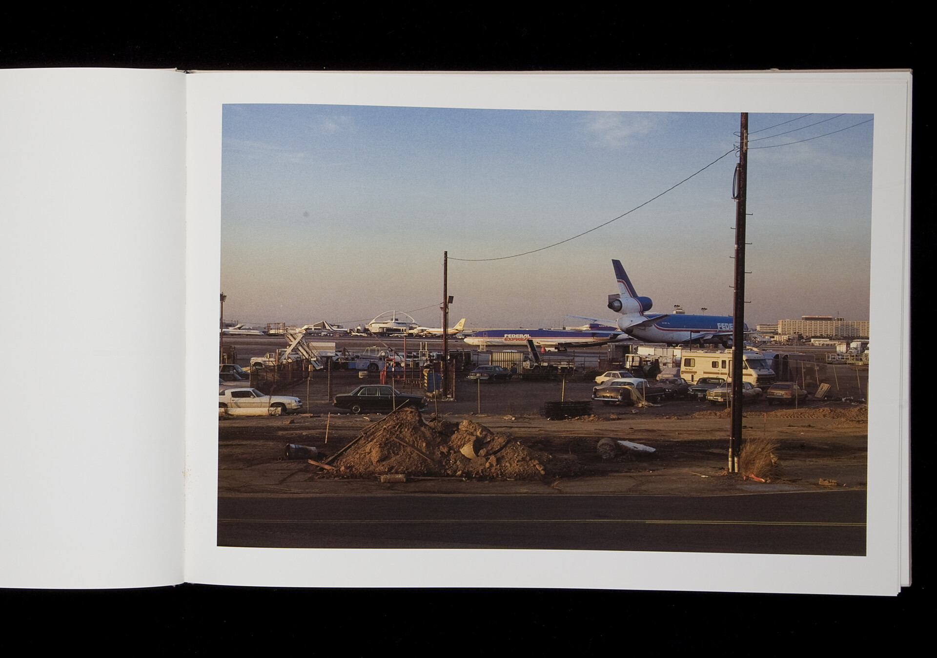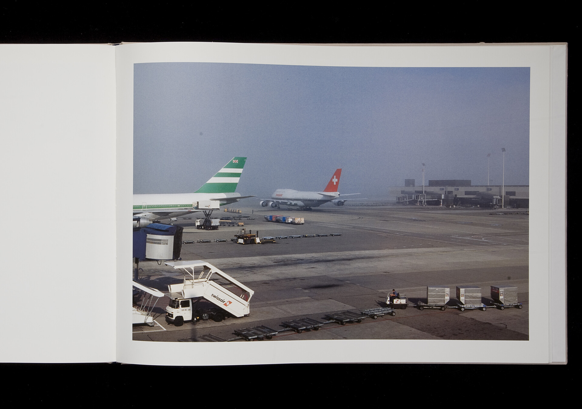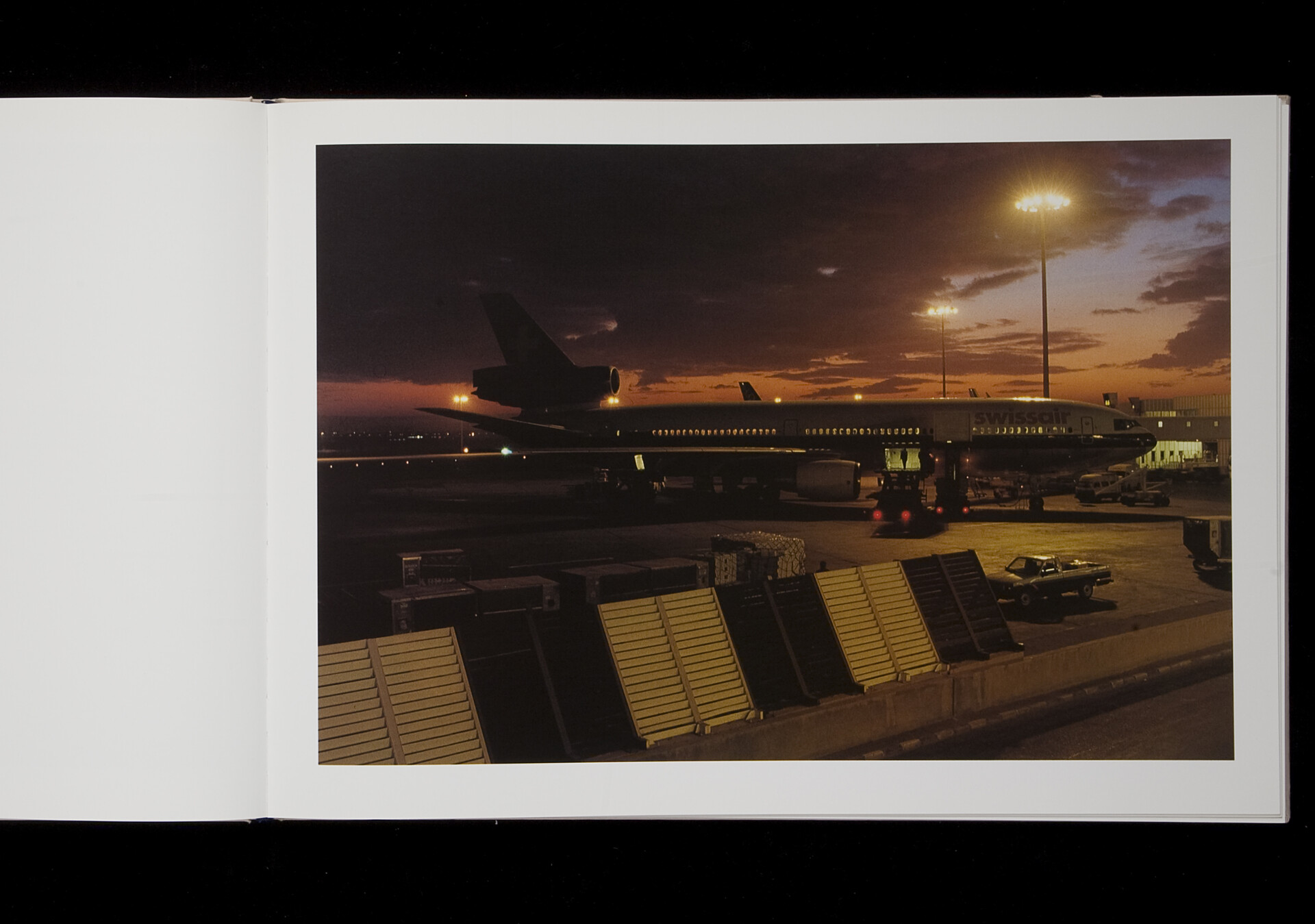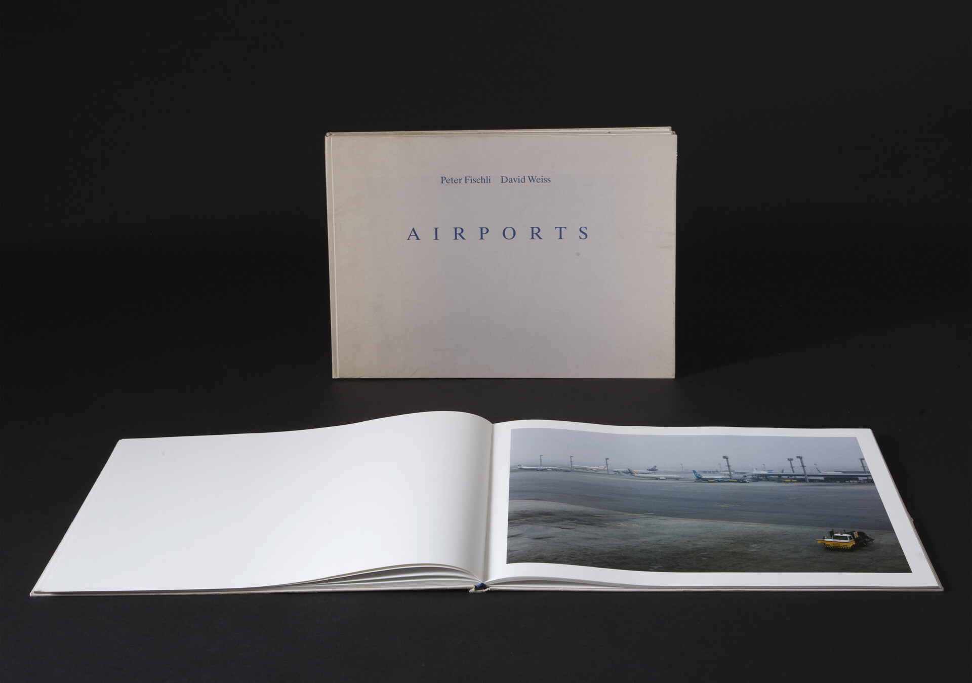 Airports by Peter Fischli and David Weiss is an artist’s book on those perpetually modern and exceptionally popular places where both the tourist nature of our understanding of the world and our insatiable hunger for ‘the world’ are perhaps most saliently visible. Airports are 40 seemingly conventional views of the heavy, inert metallic bodies of airplanes, of the machinery on the ground. But mostly we see the space around them, the vastness and emptiness of the runaway, which becomes the essence of the place itself.
