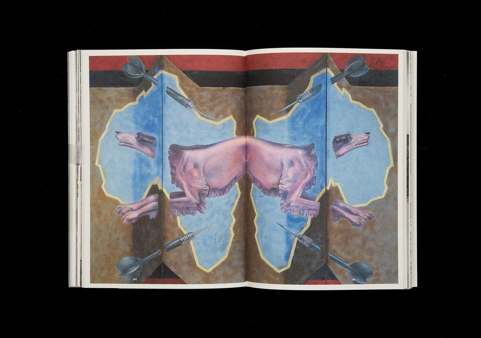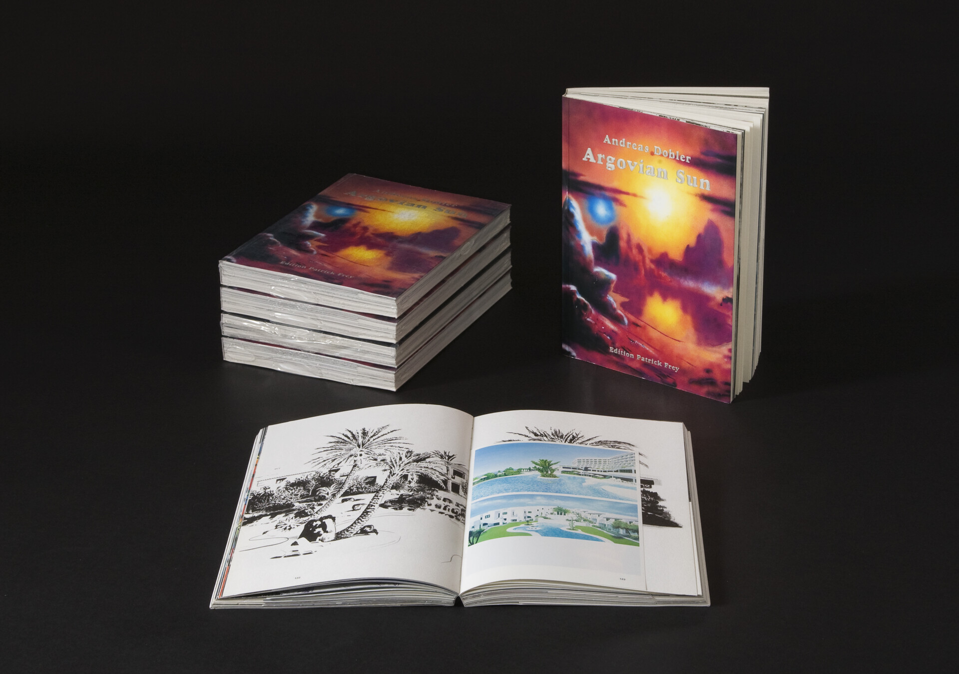 Andreas Dobler’s paintings are based on 20th-century everyday and pop culture. In his youth he was strongly influenced by pop music, psychedelia, and surrealist painting, and he continues to mix influences from high and low culture. His work is dominated by rooms without humans—hotel architecture taken from travel catalogues, science-fiction landscapes, streets from computer games, and most recently prison-like buildings, reminiscent of Piranesi. They are spaces to project our society’s desires, fears, and visions of the future. Besides numerous color reproductions of his works, we see his source material (record covers, images from newspapers and magazines, his own photographs, and sketches), and studio views.