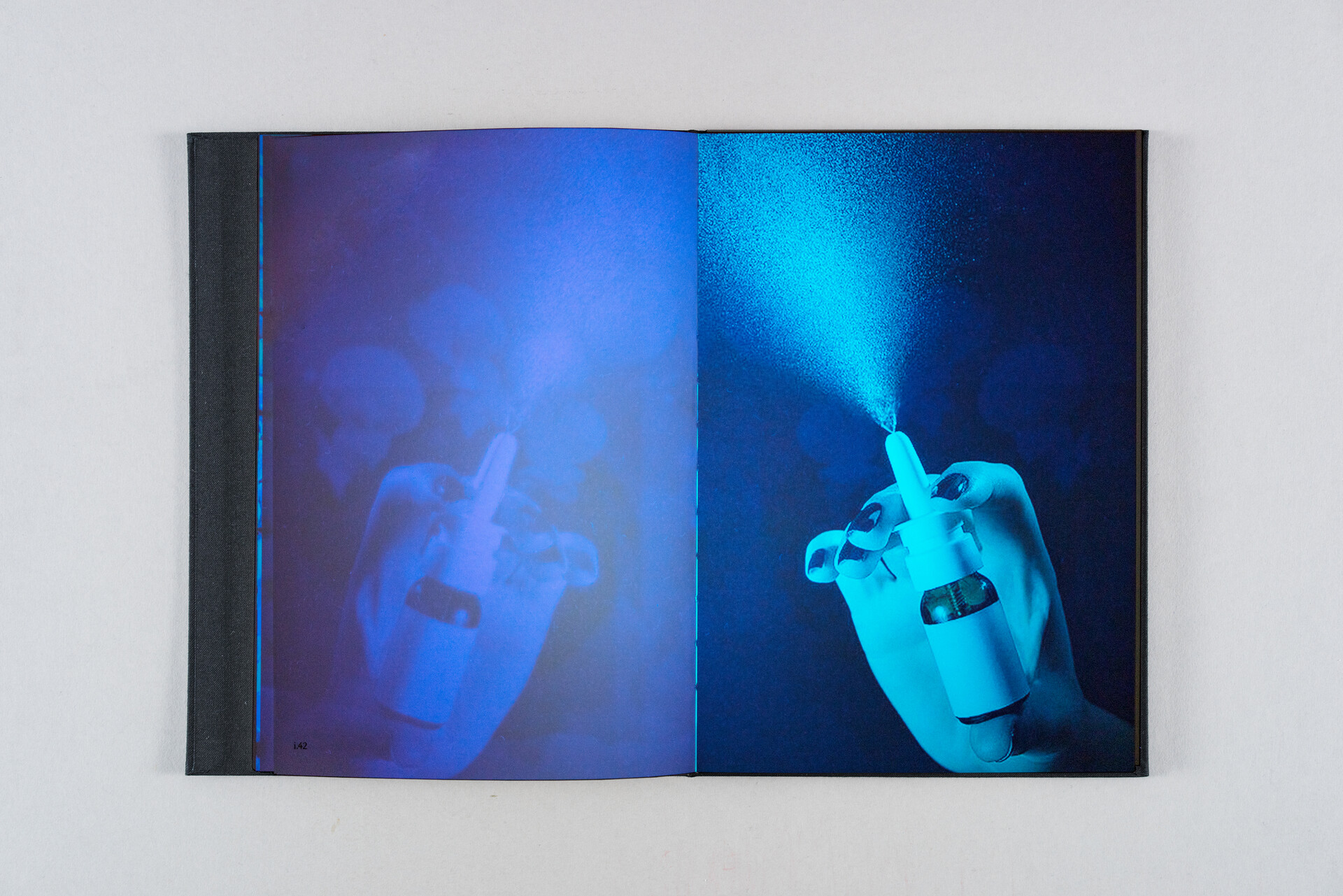 The original photographs, probably taken with small cameras or smartphones, often look surreal and abstract due to the mysterious, exotic aesthetic of the subject-matter, on the one hand, and the low quality of the photos or inferior skills of the drug-pushing photographers themselves, on the other. Unlike the stock pictures, these original photographs are invisible in The Iceberg under normal light: printed in invisible ink, they can only be viewed under ultraviolet light – the same light drug enforcers use to look for traces of narcotics. Anonymously uploaded and probably designed to self-erase once they’ve served their function, these pictures are not traceable or visible on the surface web, and only exist temporarily in this dark, secret space on the deep web. (Giorgio di Noto, 2017)