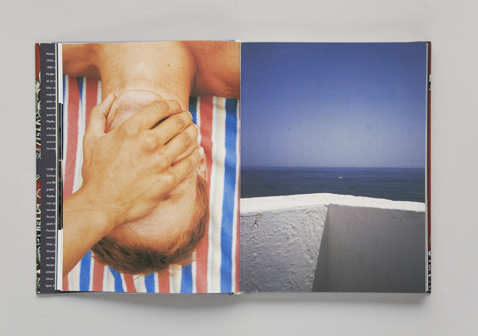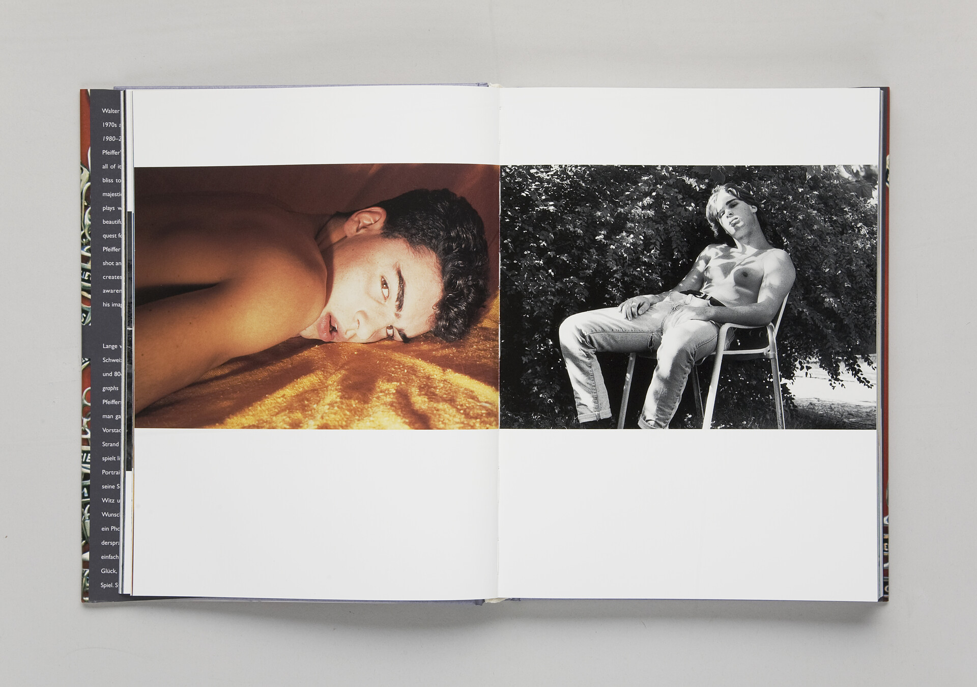 Welcome Aboard! Photographs 1980–2000 is, at the same time, a monograph on Pfeiffer’s photographic work and an artist’s book, a photo-novel all of its own. Pfeiffer takes you on a long trip from suburban bliss to the horse race at Ascot, from wind-swept beaches to majestic mountain tops. Pfeiffer knows our dreams and artfully plays with them. In his still lives, landscapes, and portraits of beautiful boys and mischievous women, Pfeiffer celebrates his quest for beauty and glamour with sophistication, irony, and wit. Pfeiffer leads you in a world between reality and reverie, snapshot and mise-en-scène. It’s a photo album from Arcadia. With simple means Pfeiffer creates intelligent and classic images of beauty and bliss, imbued with a wistful awareness of their artifice. Stylish, suggestive, and erotic, his images are an encyclopaedia of desire.